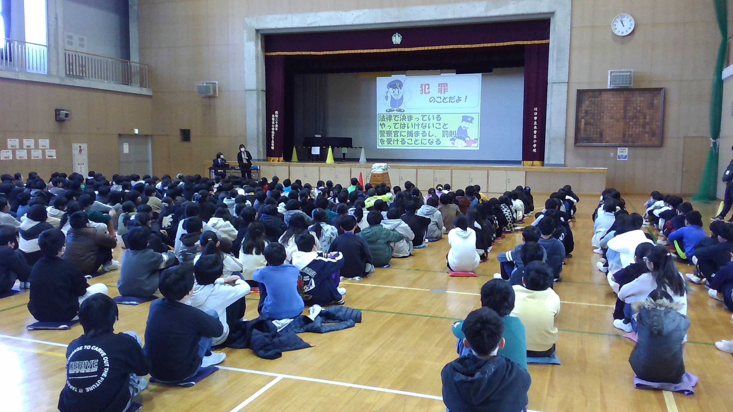 【5年生】非行防止教室 投稿日時: 2026年1月23日 投稿者: kizoro.official 1月22日(火)に非行防止教室がありました。やってはいけないことや犯罪につながる行為、SNSの使い方などについて話をしてくれました。相手に嫌な思いをさせないことが大切だと改めて知ることができました。